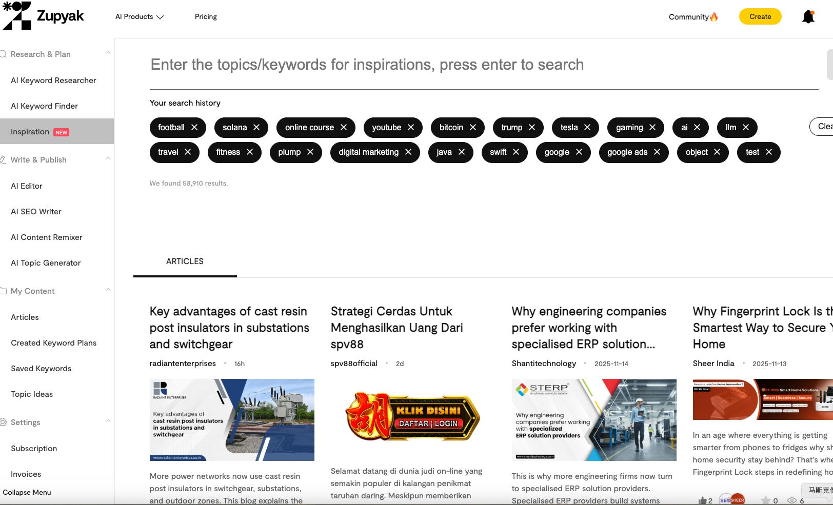 🔍 “Get Inspiration” – Discover Relevant Content Instantly